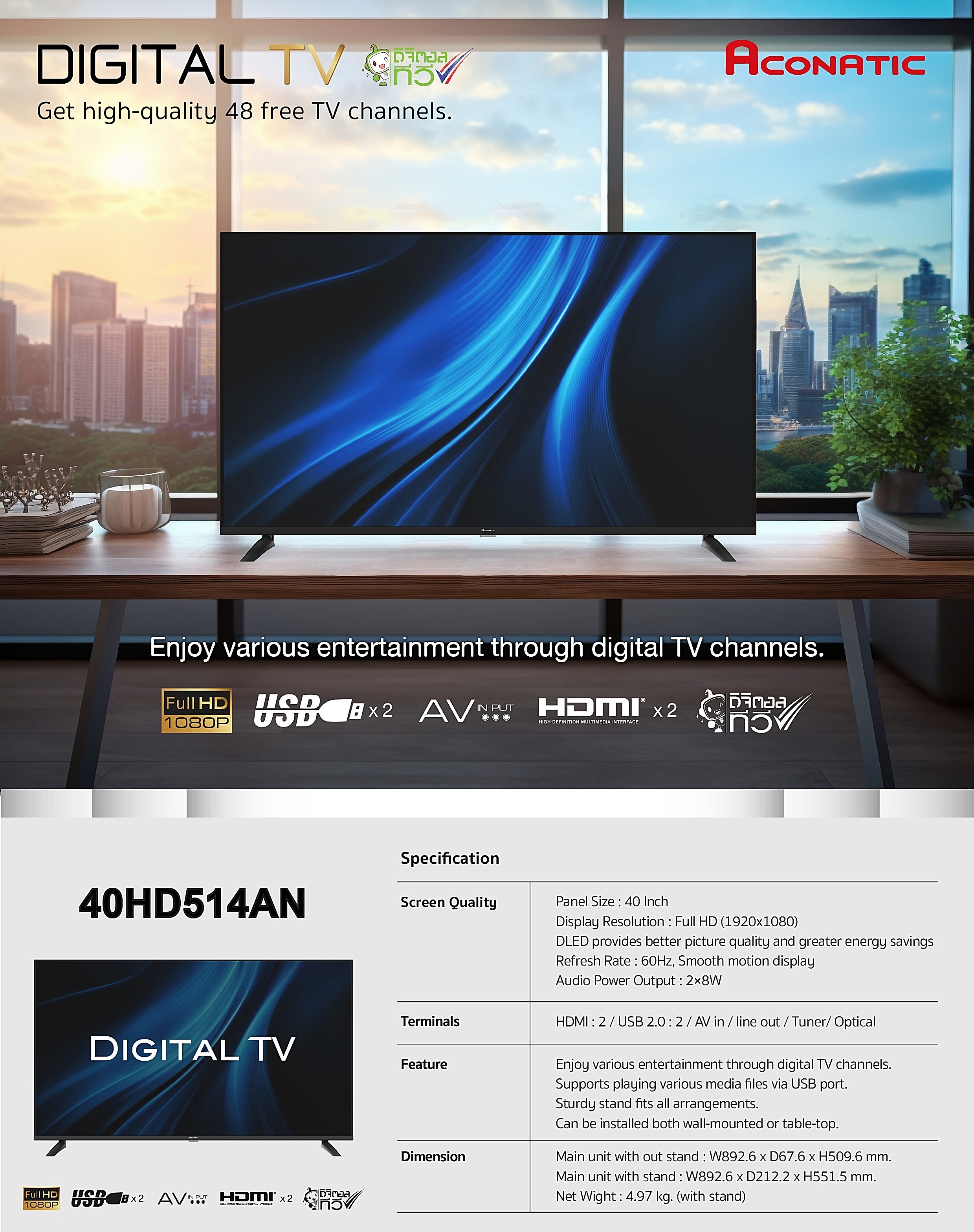 LED ดิจิตอลทีวี ขนาด 40 นิ้ว Aconatic 40HD514AN
